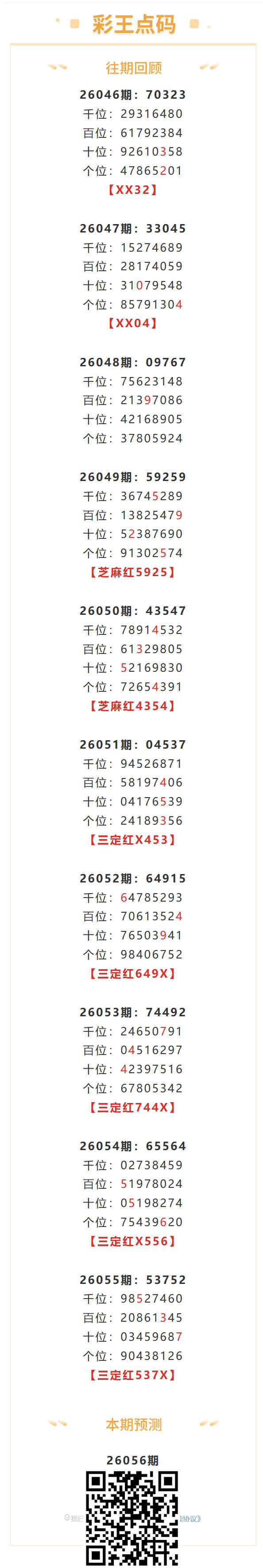 【排列五-056期】三定5连红!本月圈红1次芝麻,芝麻近10红2;上期三定红537X