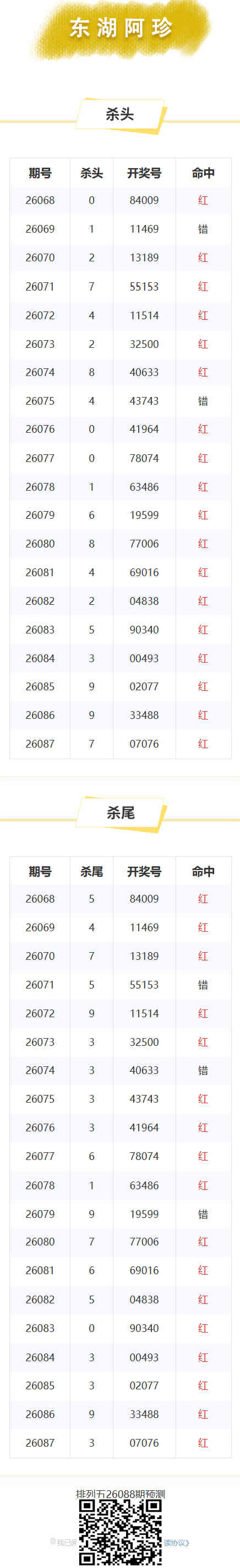 【排列五-088期】杀一四8连红!本月圈红7次杀一四,杀一四近10红9;上期杀一四红
