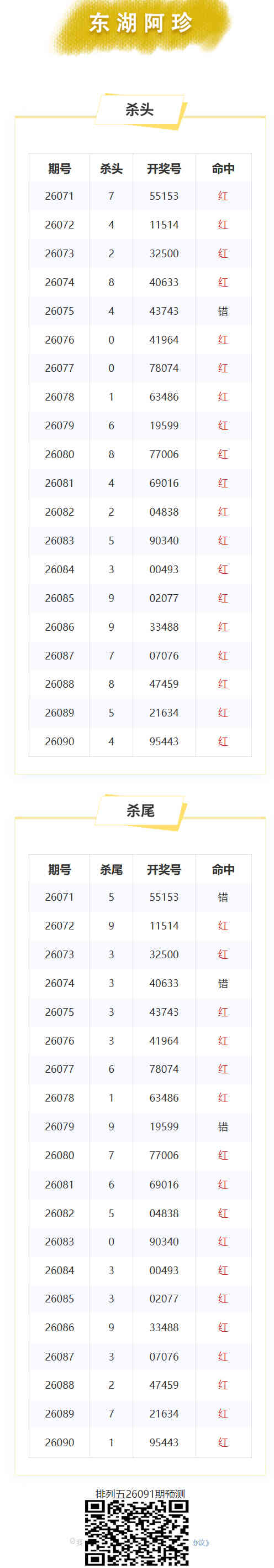 【排列五-091期】杀一四11连红!本月圈红10次杀一四,杀一四近10红10;上期杀一四红