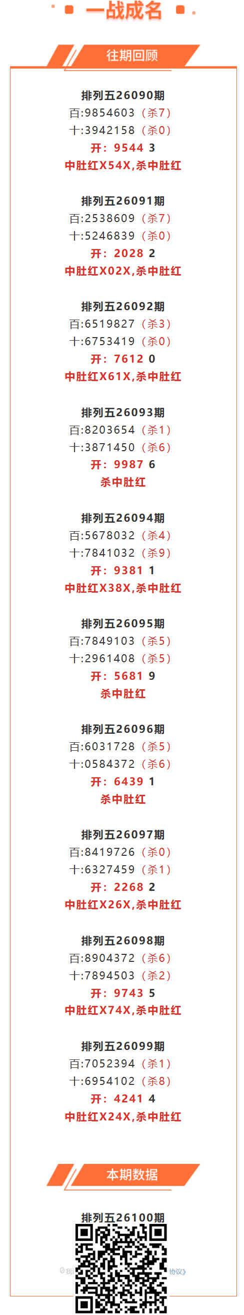 【排列五-100期】杀中肚16连红!本月圈红13次中肚,中肚近10红7;上期中肚红X24X!