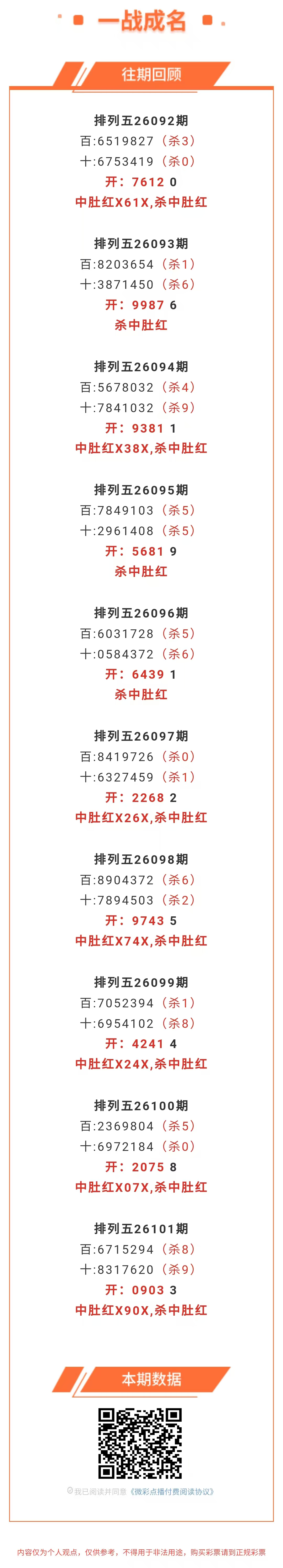 【排列五-102期】杀中肚18连红,本月圈红15次中肚,中肚近10红7;上期中肚红X90X