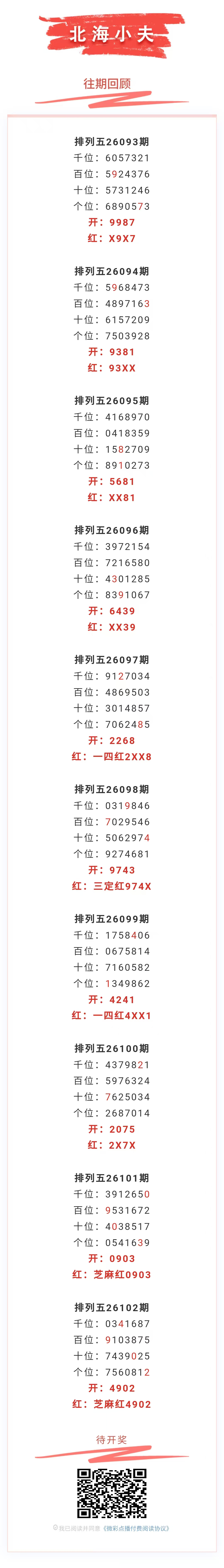 【排列五-103期】芝麻2连红,本月圈红4次芝麻,芝麻近10红2;上期芝麻红4902