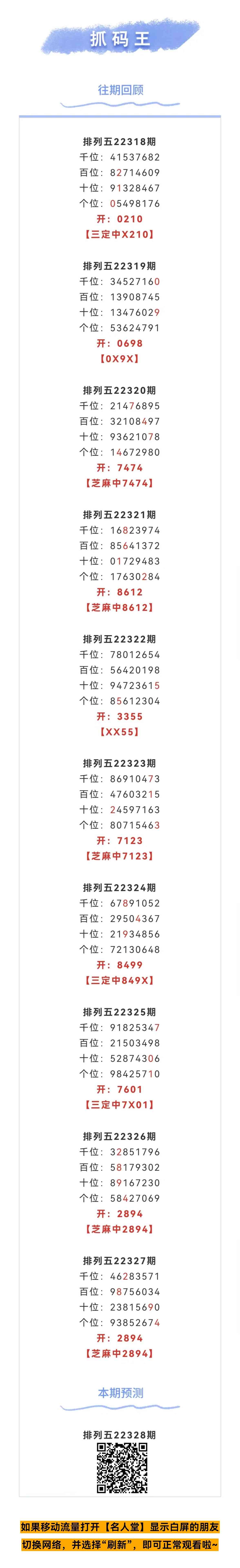 【排列五-328期】本月圈中4次芝麻,芝麻近10中5;上期芝麻中2894
