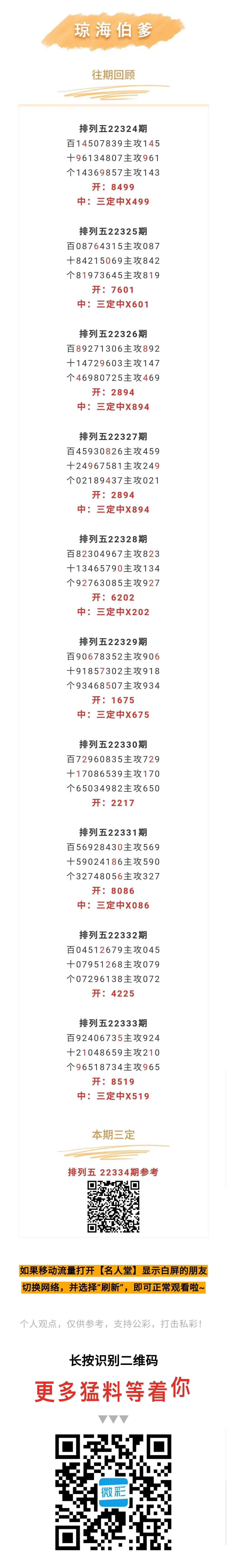 【排列五-334期】上期三定中X519,三定近10中8;本月圈中9次三定!