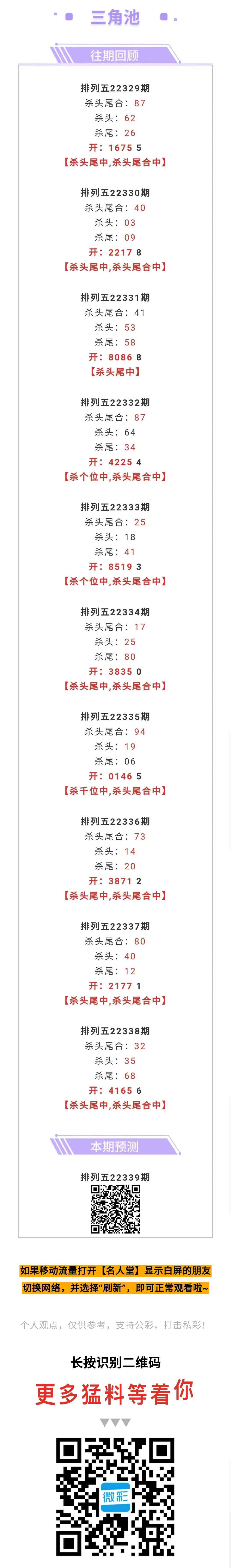 【排列五-339期】上期杀头尾合中,杀头尾合10中9;本月累计圈中16次!