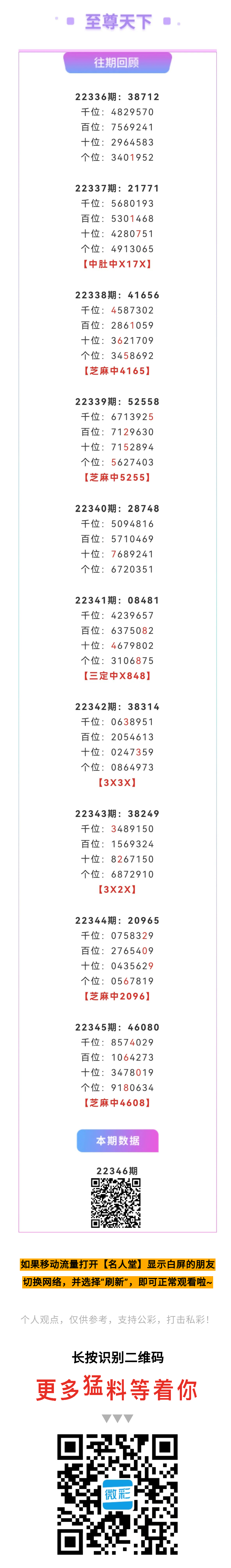 【排列五-346期】上期芝麻中4608,芝麻2连中;本月圈中6次芝麻!