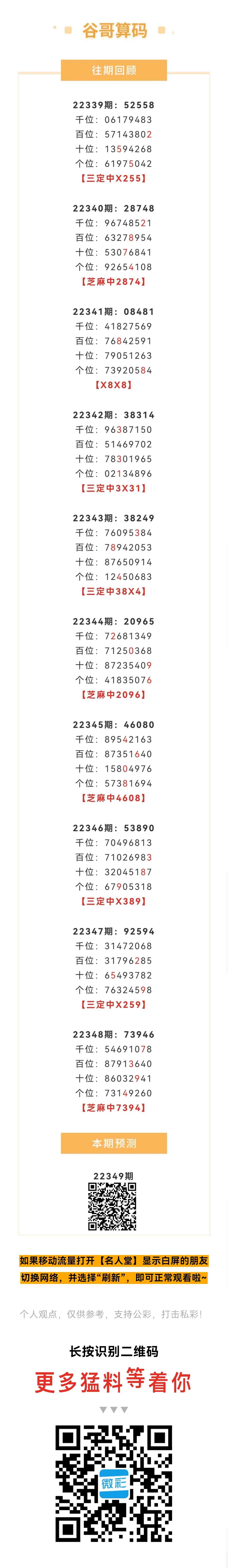 【排列五-349期】上期芝麻中7394,芝麻近10中4;本月圈中14次芝麻!