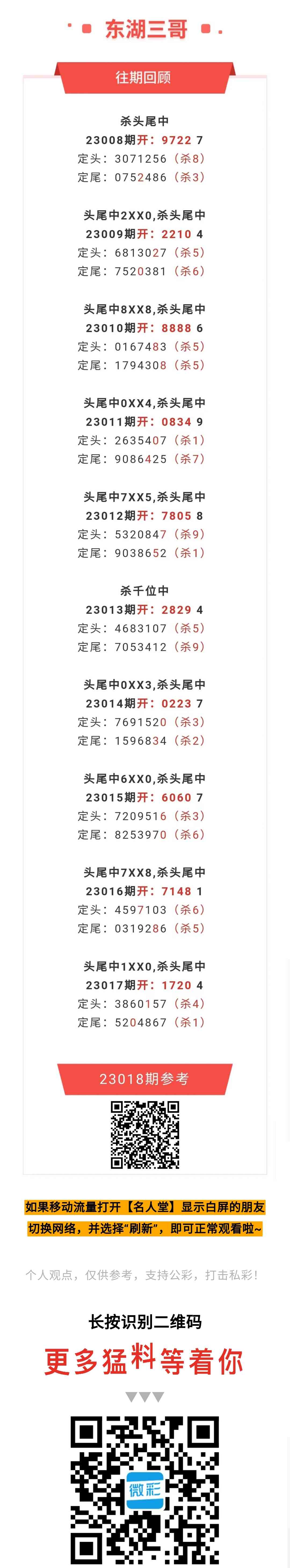 【排列五-018期】上期头尾中1XX0,杀头尾中,头尾近10中8;本月圈中11次头尾!