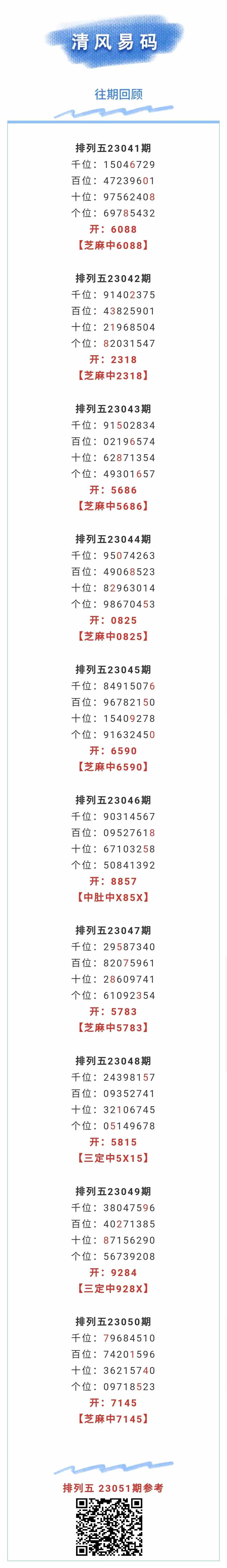 【排列五-051期】上期芝麻中7145;芝麻近10中7;本月圈中1次芝麻!