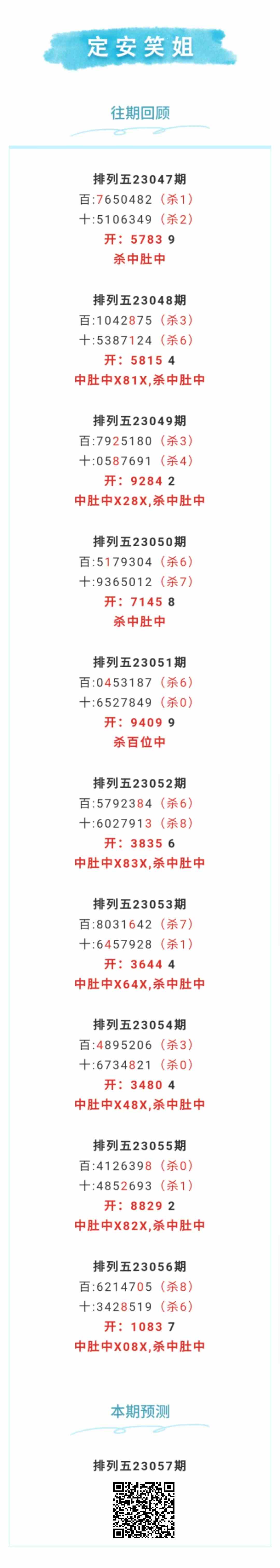 【排列五-057期】本月圈中5次中肚,中肚近10中7;上期中肚中X08X,杀中肚中