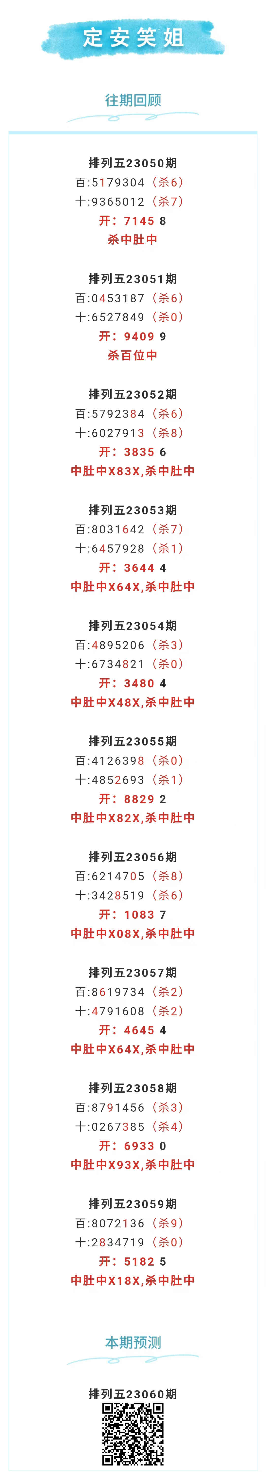 【排列五-060期】上期中肚中X18X,杀中肚中,中肚近10中8;本月圈中8次中肚!