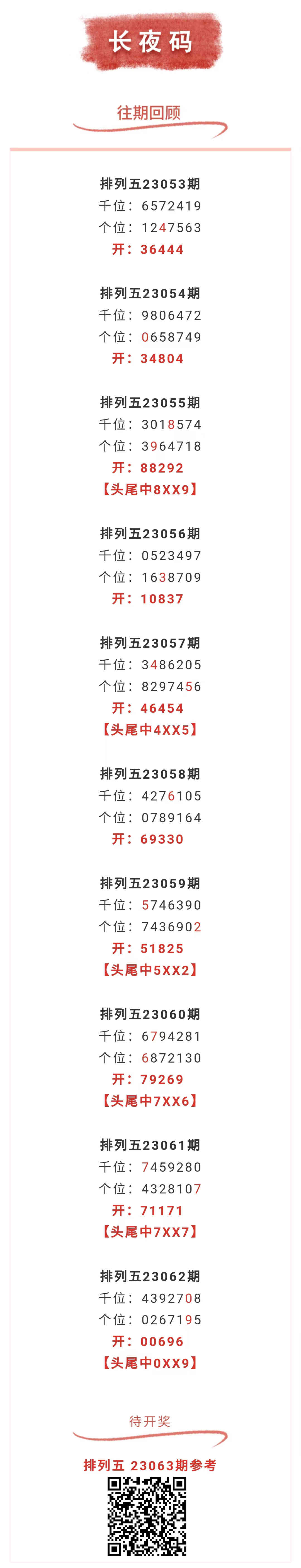 【排列五-063期】上期头尾中0XX9,头尾近10中6;本月圈中7次头尾!