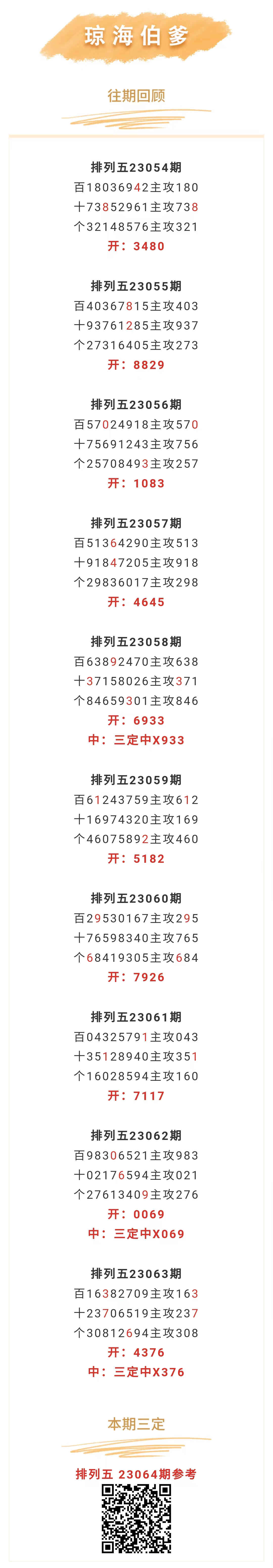 【排列五-064期】上期三定中X376,三定近10中3;本月圈中5次三定!