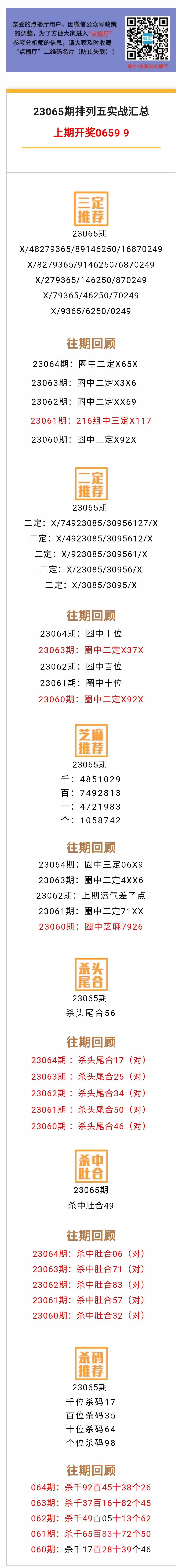【排列五-065期】“杀数推荐”2连对;“杀头尾合”22连对,“杀中肚合”15连对!