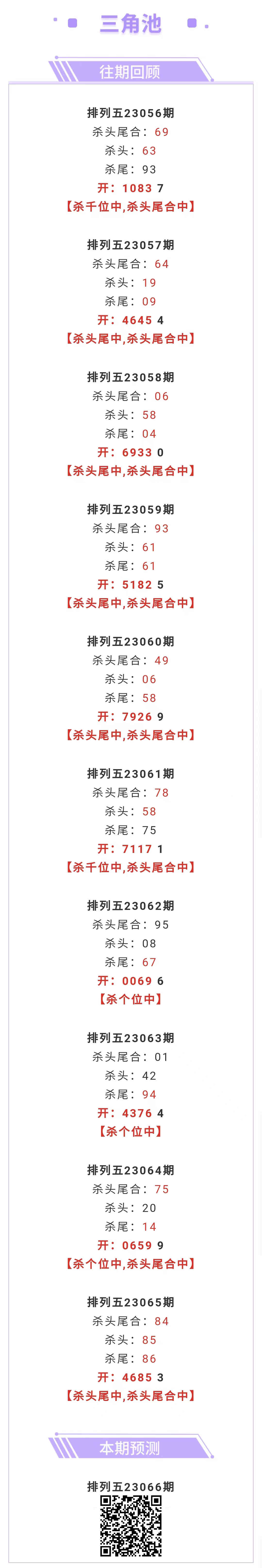 【排列五-066期】上期杀头尾中,杀头尾合中,杀头尾合近10中8;本月圈中13次杀头尾合
