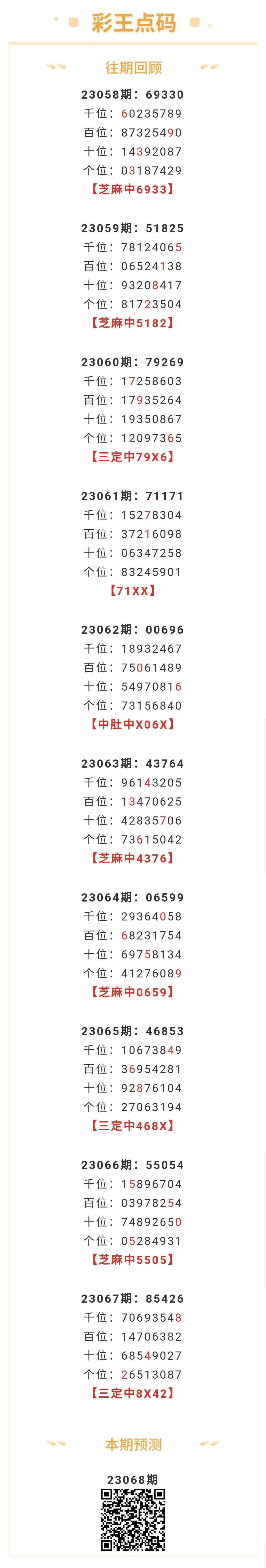 【排列五-068期】上期三定中8X42,芝麻近10中5;本月圈中8次芝麻!