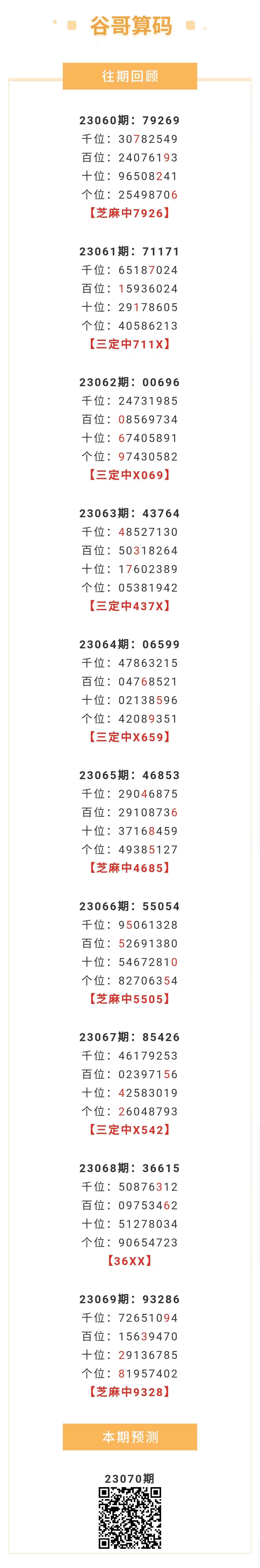 【排列五-070期】上期芝麻中9328,芝麻近10中4;本月圈中8次芝麻!