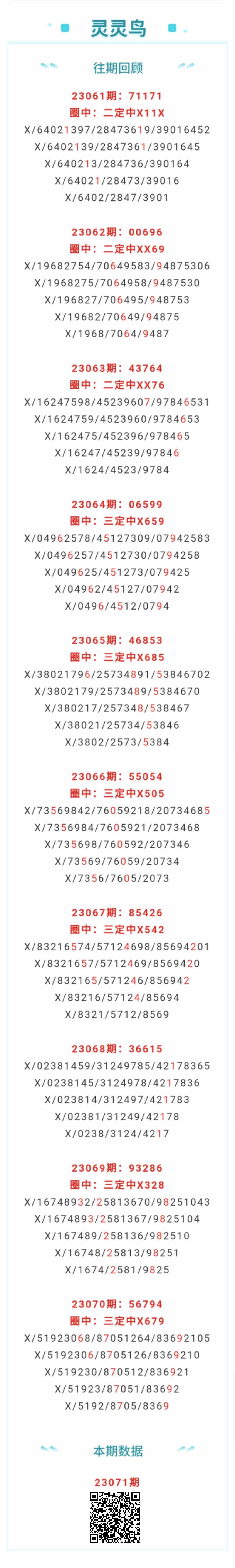 【排列五-071期】本月圈中13次三定,三定近10中6;上期三定中X679