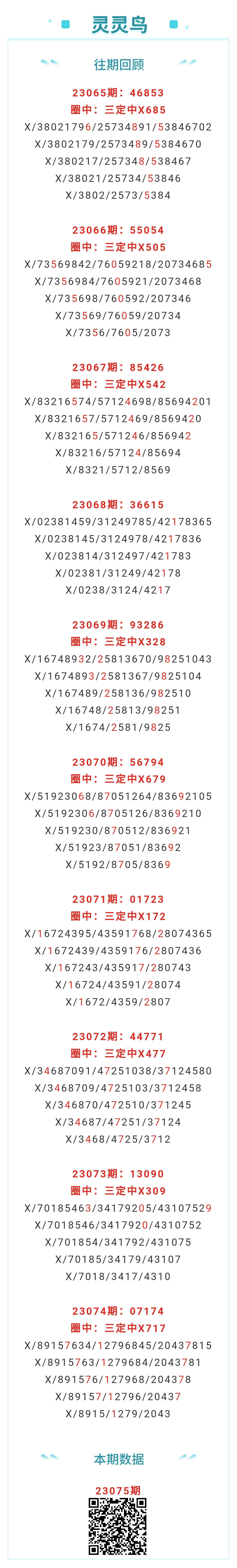 【排列五-075期】上期三定中X717,三定近10中9;本月圈中17次三定!