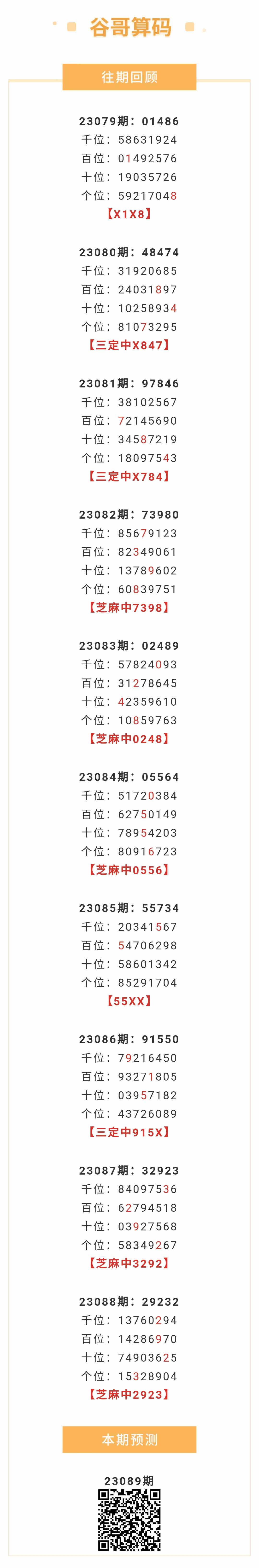 【排列五-089期】2连中!上期芝麻中2923,芝麻近10中5;本月圈中5次芝麻!