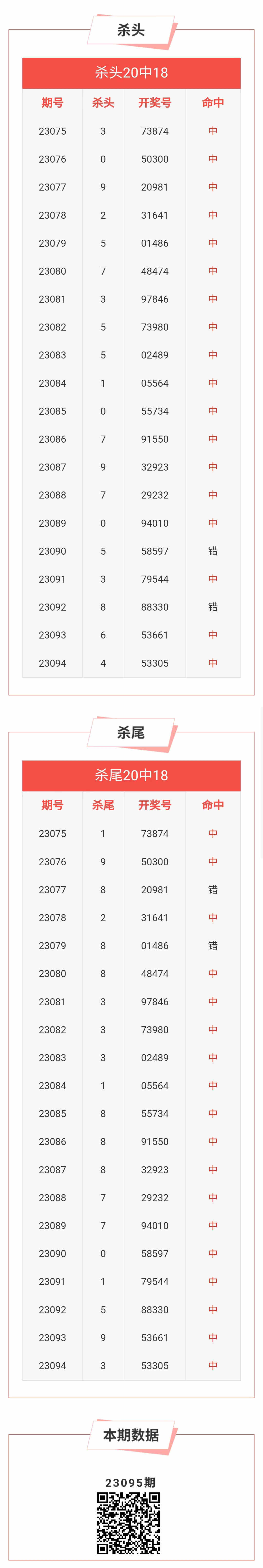 【排列五-095期】上期杀头尾中,杀头尾近10中8;本月圈中12次杀头尾!