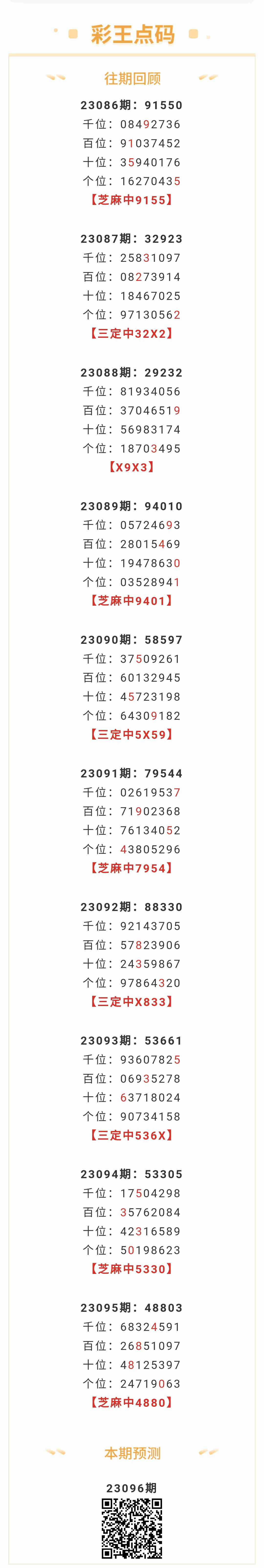 【排列五-096期】上期芝麻中4880,芝麻近10中5,本月圈中6次芝麻