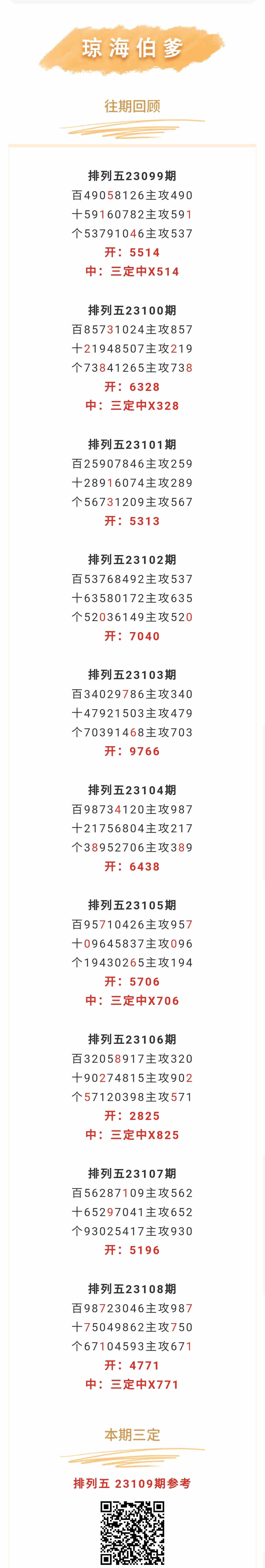 【排列五-109期】本月圈中13次三定,三定近10中5;上期三定中X771