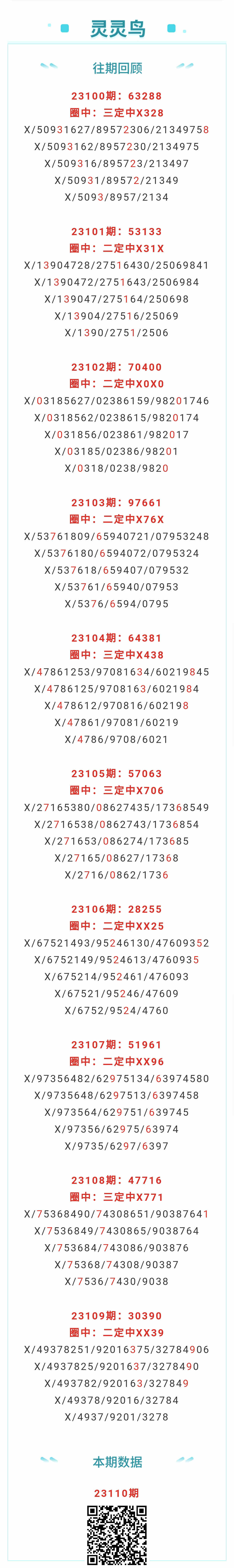 【排列五-110期】本月圈中14次三定,三定近10中4;上期二定中XX39