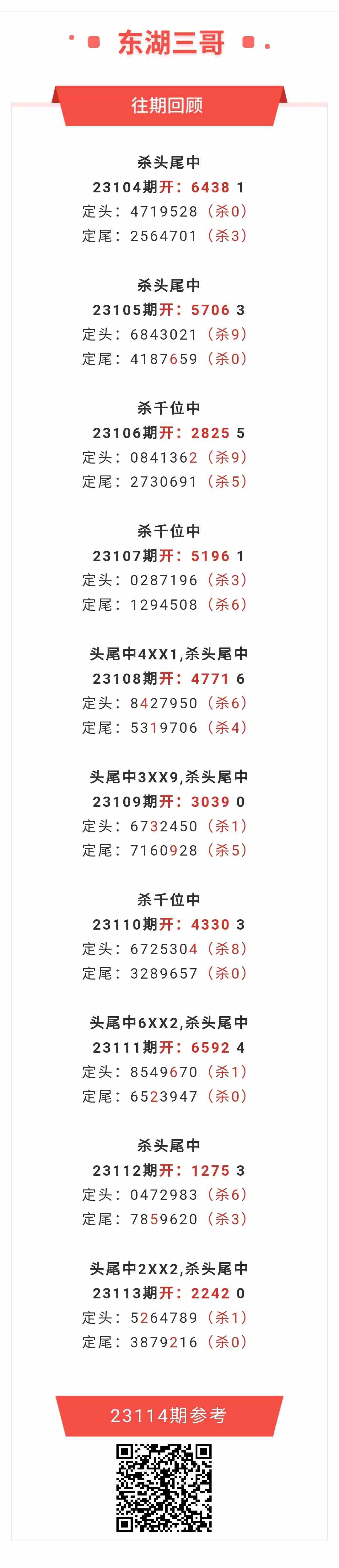 【排列五-114期】本月圈中2次头尾,头尾近10中4;上期头尾中2XX2,杀头尾中