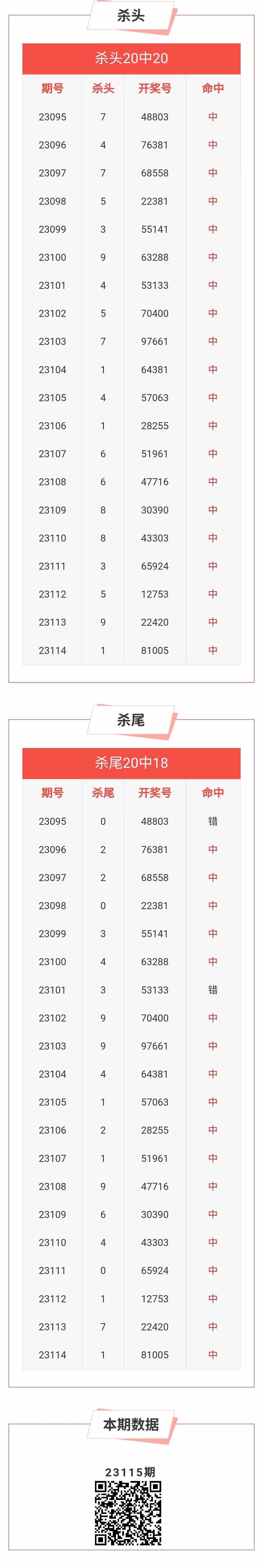 【排列五-115期】本月圈中4次杀头尾,杀头尾近10中10;上期杀头尾中