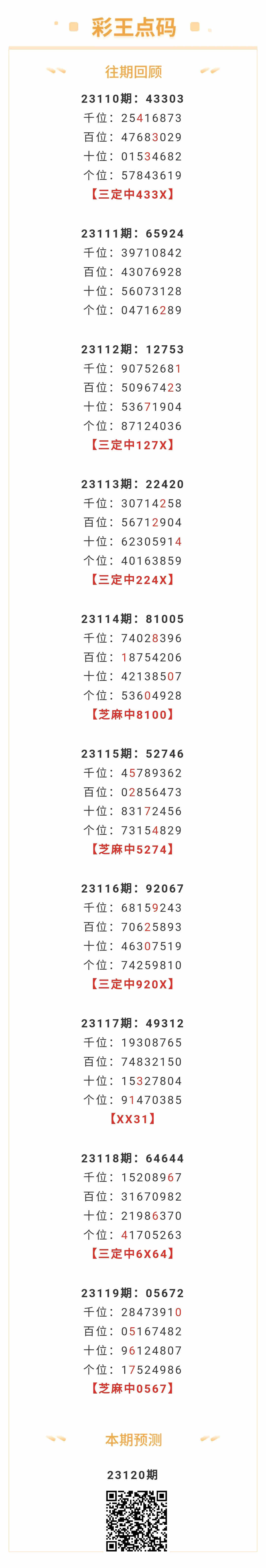【排列五-120期】本月圈中3次芝麻,芝麻近10中3;上期芝麻中0567