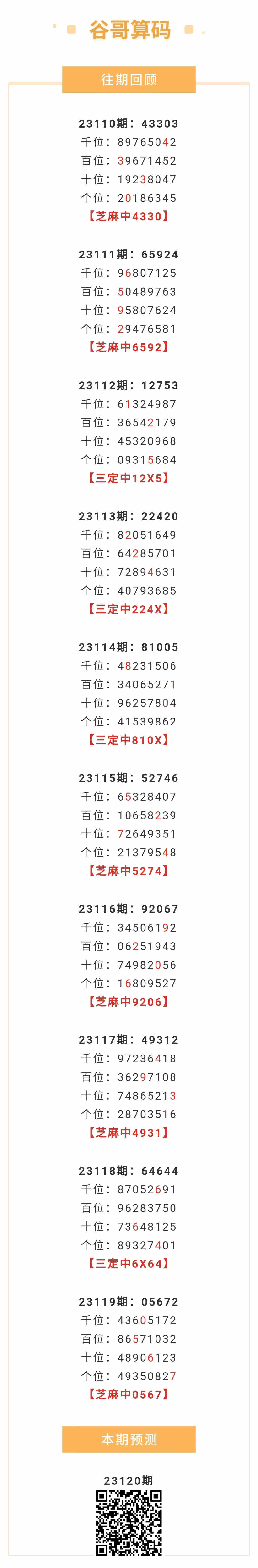 【排列五-120期】本月圈中5次芝麻,芝麻近10中6;上期芝麻中0567