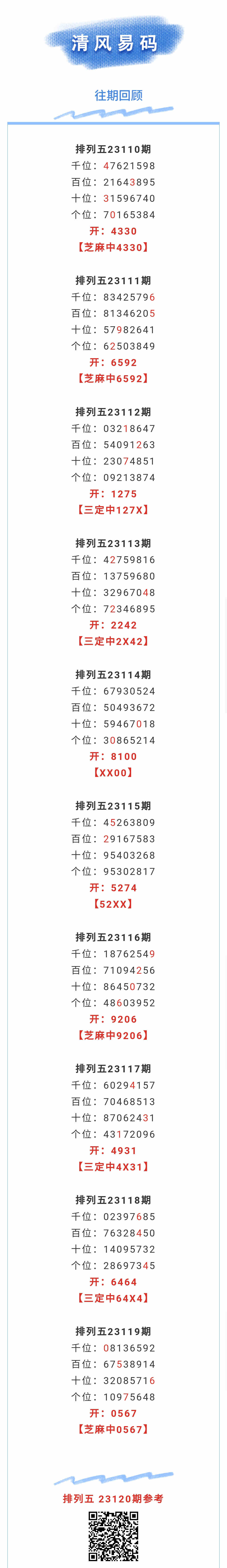 【排列五-120期】本月圈中3次芝麻,芝麻近10中4;上期芝麻中0567