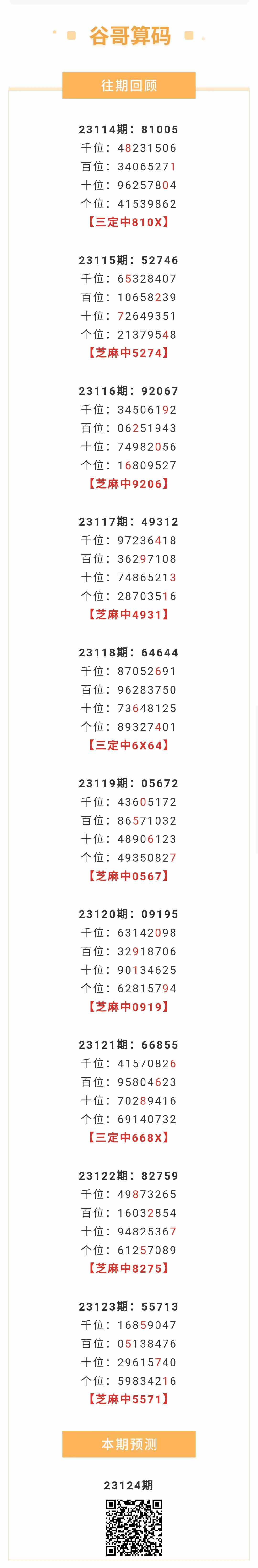 【排列五-124期】本月圈中8次芝麻,芝麻近10中7;上期芝麻中5571