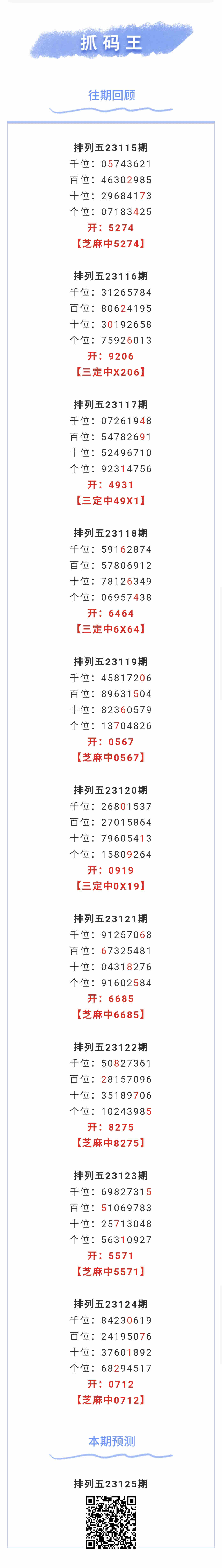 【排列五-125期】本月圈中6次芝麻,芝麻近10中6;上期芝麻中0712