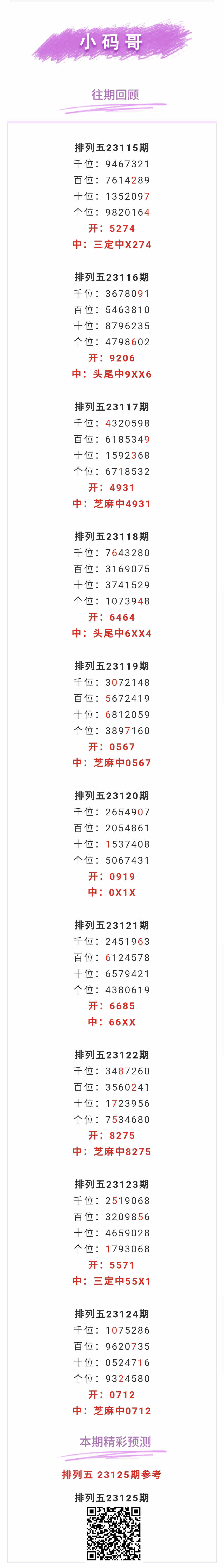 【排列五-125期】本月圈中6次芝麻,芝麻近10中4;上期芝麻中0712