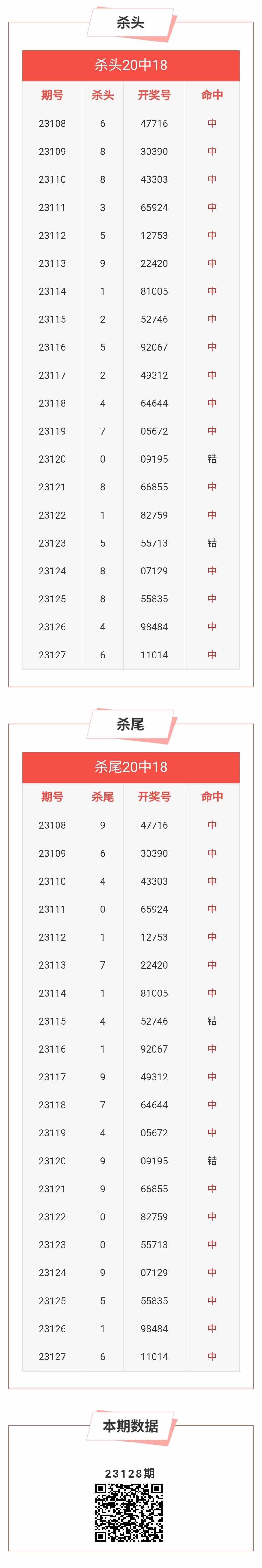 【排列五-128期】本月圈中14次杀头尾,杀头尾近10中8;上期杀头尾中