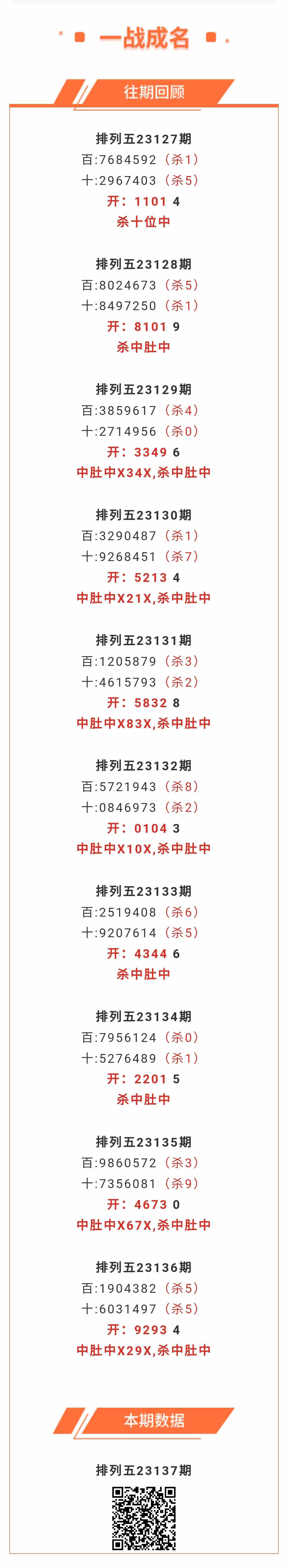 【排列五-137期】本月圈中11次中肚,中肚近10中6;上期中肚中X29X,杀中肚中