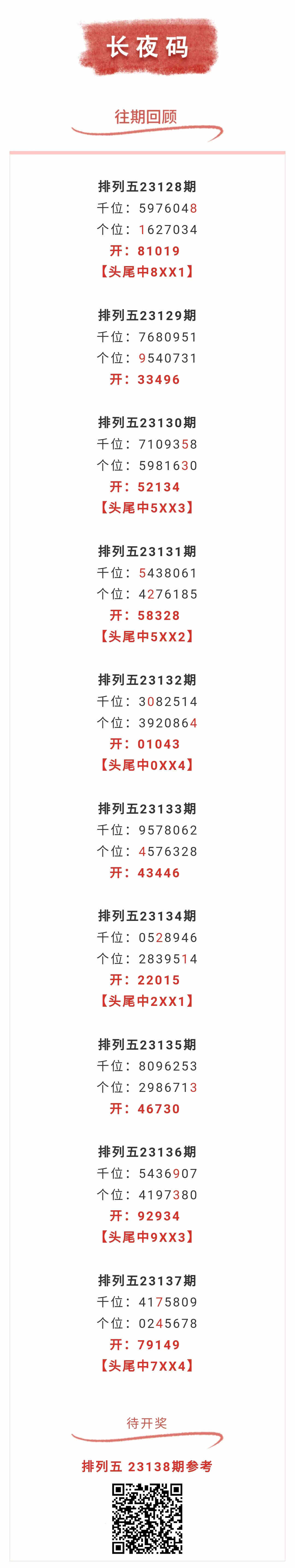 【排列五-138期】本月圈中14次头尾,头尾近10中7;上期头尾中7XX4