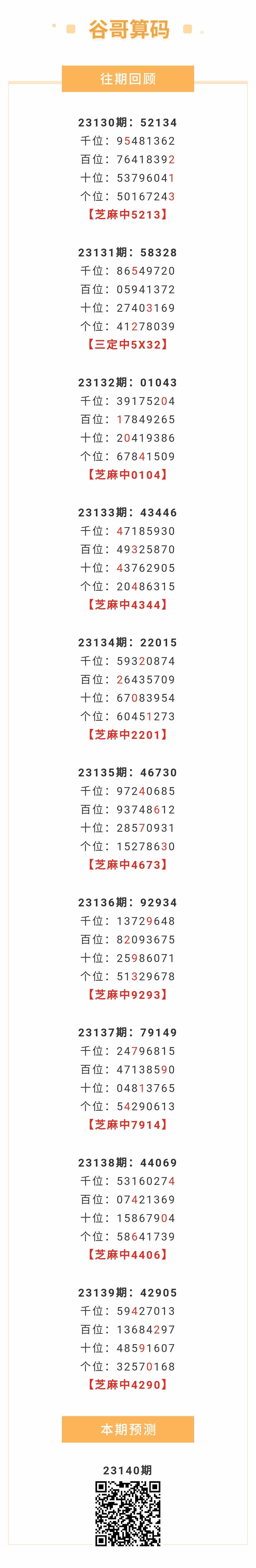 【排列五-140期】本月圈中22次芝麻,芝麻近10中9;上期芝麻中4290