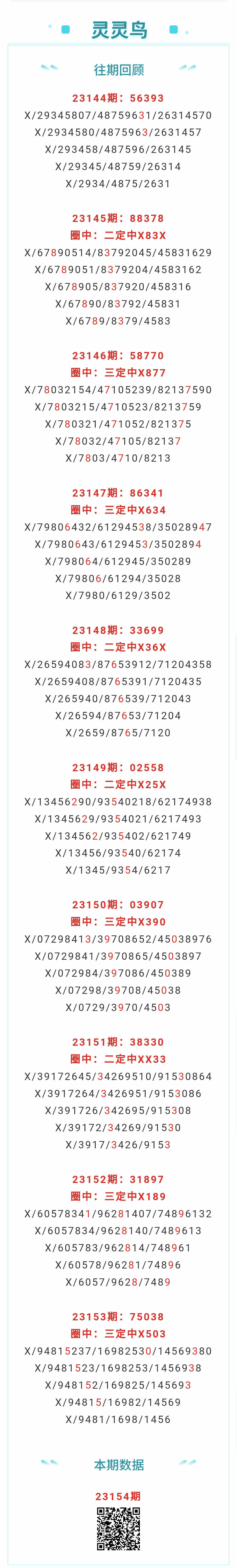 【排列五-154期】本月圈中6次三定,三定近10中5;上期三定中X503