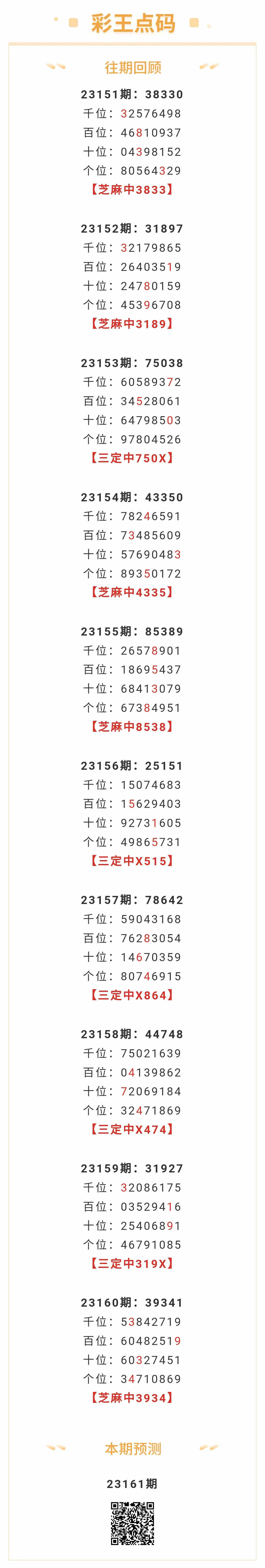 【排列五-161期】本月圈中9次芝麻,芝麻近10中5;上期芝麻中3934