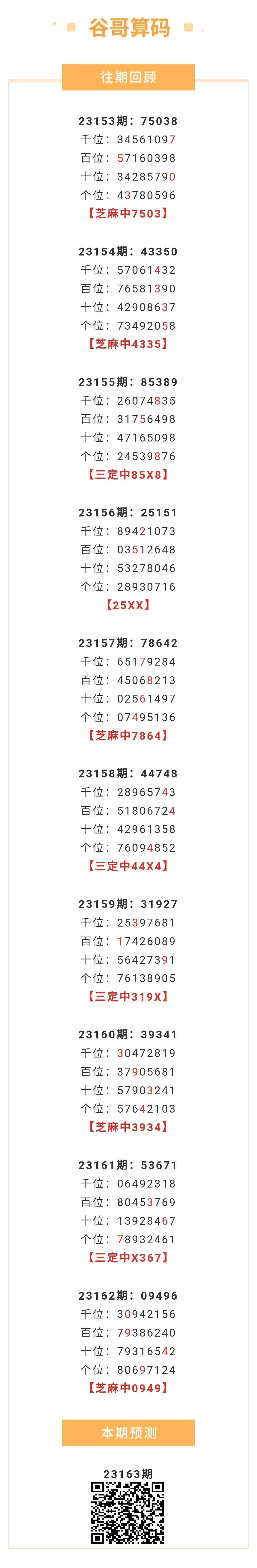 【排列五-163期】上期芝麻中0949;芝麻近10中5;本月圈中10次芝麻!