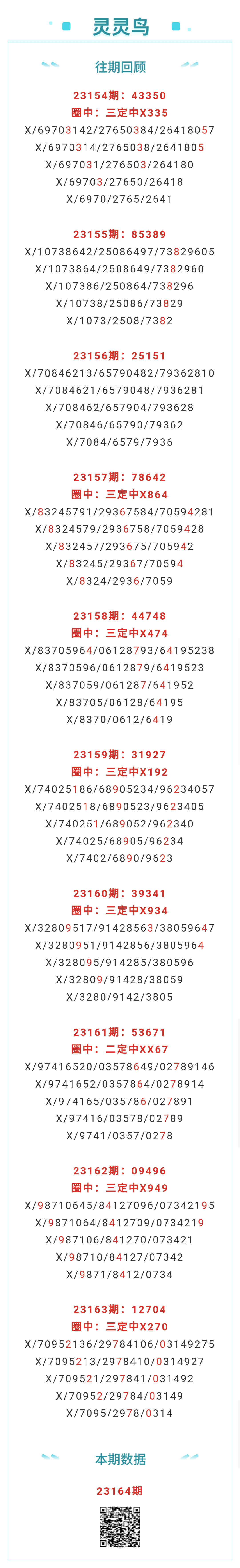 【排列五-164期】本月圈中13次三定,三定近10中7;上期三定中X270