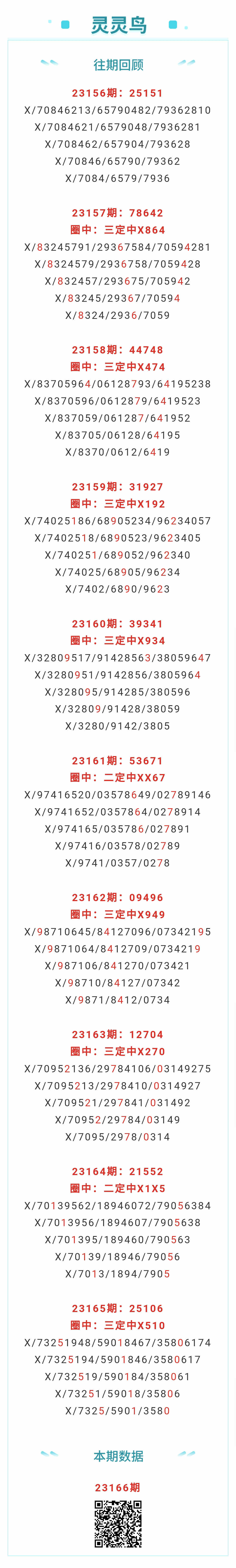 【排列五-166期】本月圈中14次三定,三定近10中7;上期三定中X510
