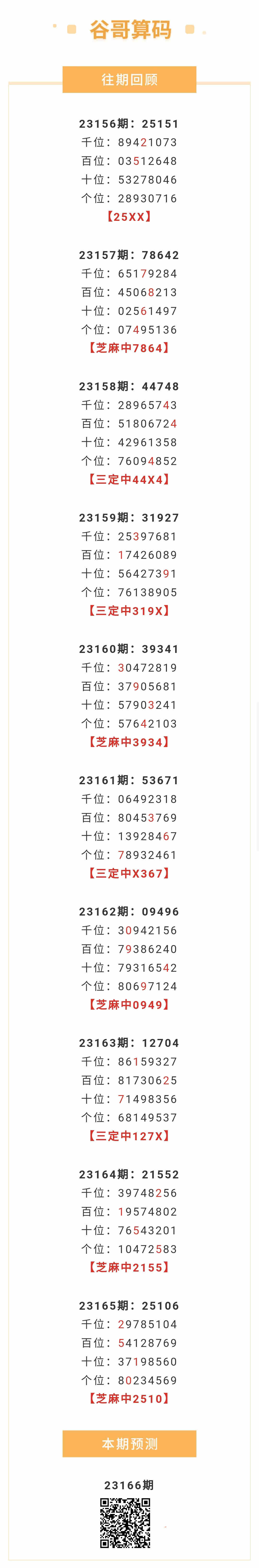 【排列五-166期】本月圈中12次芝麻,芝麻近10中5;上期芝麻中2510