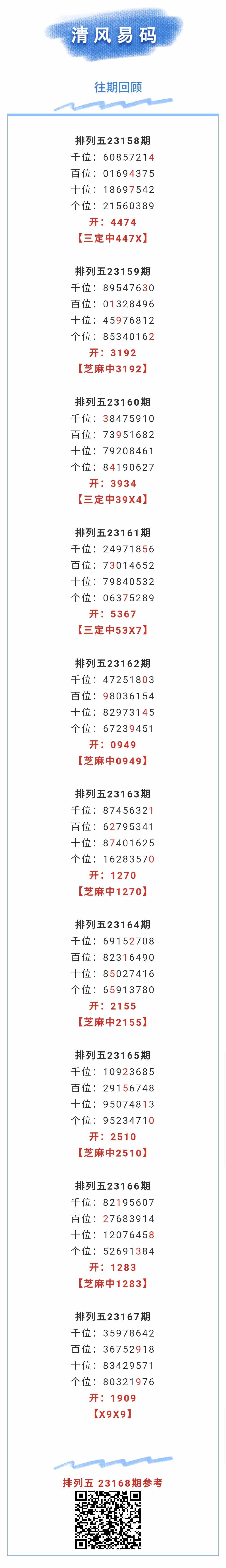 【排列五-168期】本月圈中14次芝麻,芝麻近10中6;上期X9X9