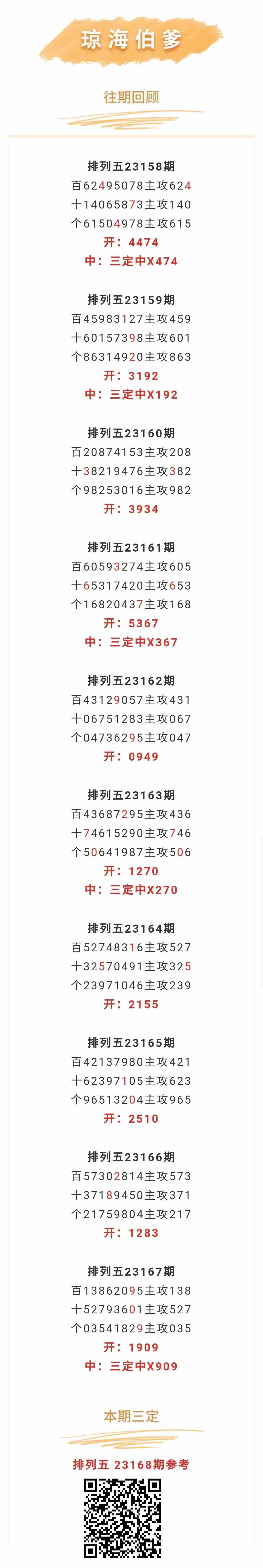 【排列五-168期】本月圈中13次三定,三定近10中5;上期三定中X909