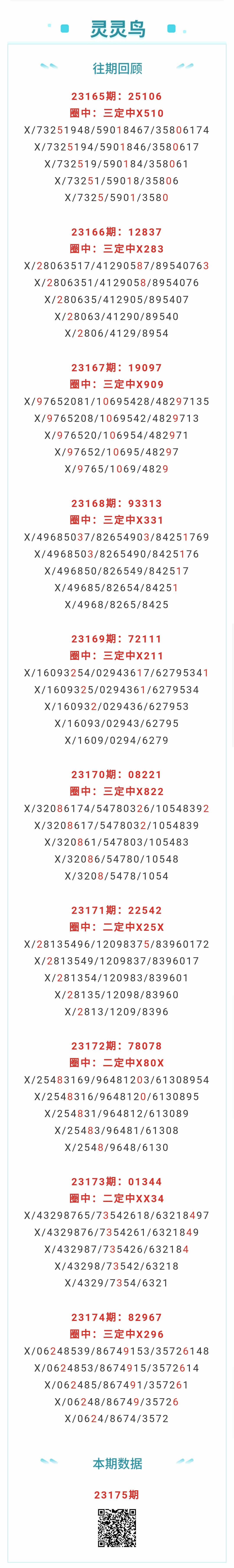 【排列五-175期】本月圈中1次三定,三定近10中7;上期三定中X296