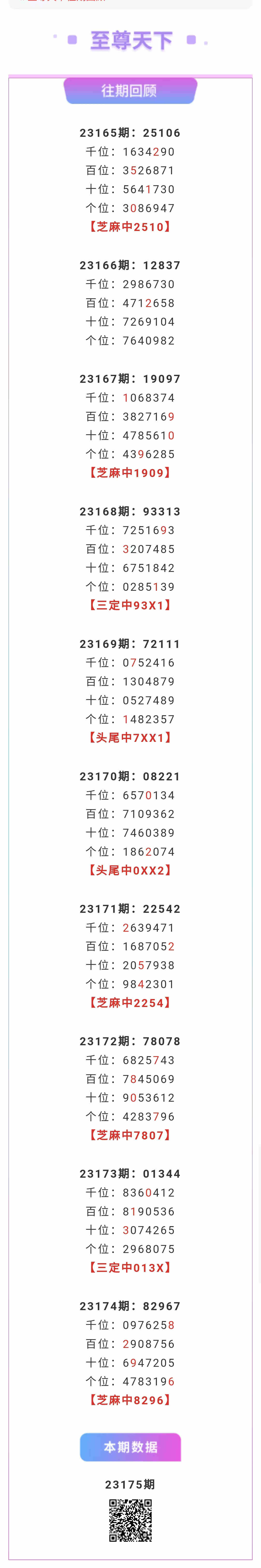 【排列五-175期】本月圈中2次芝麻,芝麻近10中5;上期芝麻中8296
